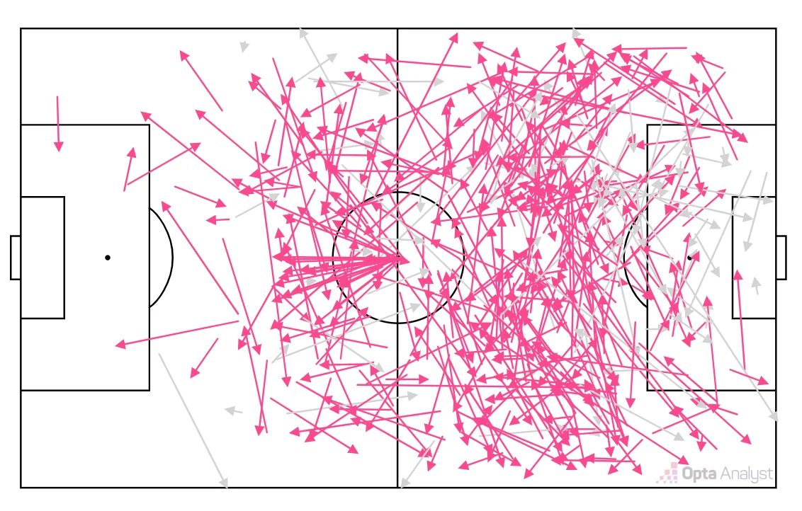 Інший важливий плюс: користь у пресингу. Девід продуктивно високо тисне на суперника, не випадає зі структури в середньому блоці з різкими спринтами. Він вміло читає гру. Як тільки флангом починає рухатися партнер, Джонатан вже знає, де йому потрібно бути, щоб отримати передачу. Крім того, форвард часто діє з глибини, що дає змогу розганяти атаки, а також відпрацьовує в обороні.