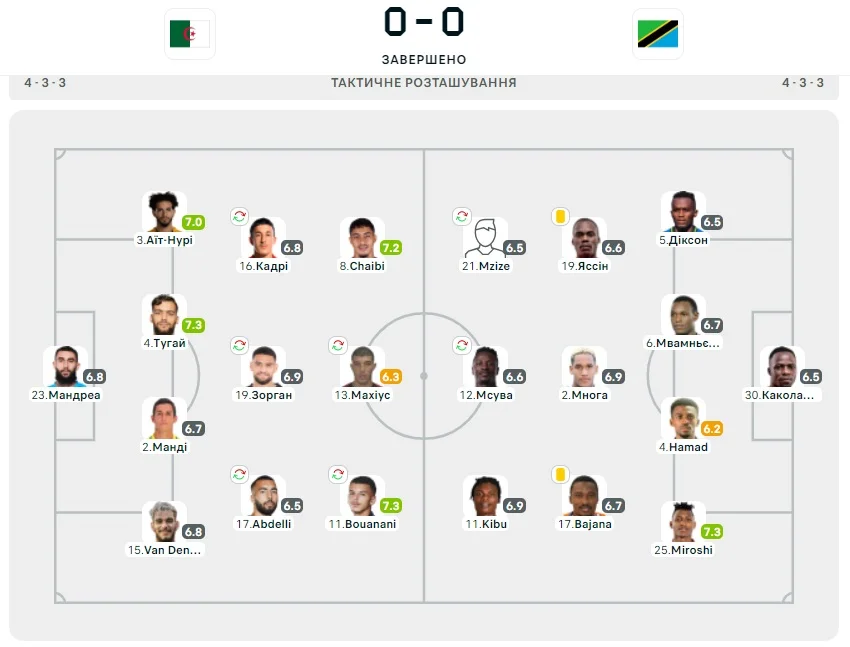Следует отметить, что важное значение в успехе своей национальной команды сыграл защитник Шахтера Новатус Мироши. Он стал лучшим игроком в составе сборной Танзании, получив от статистических порталов оценку 7.3. Лучших цифр нет ни у кого – два игрока сборной Алжира смогли лишь повторить показатели легионера Шахтера.