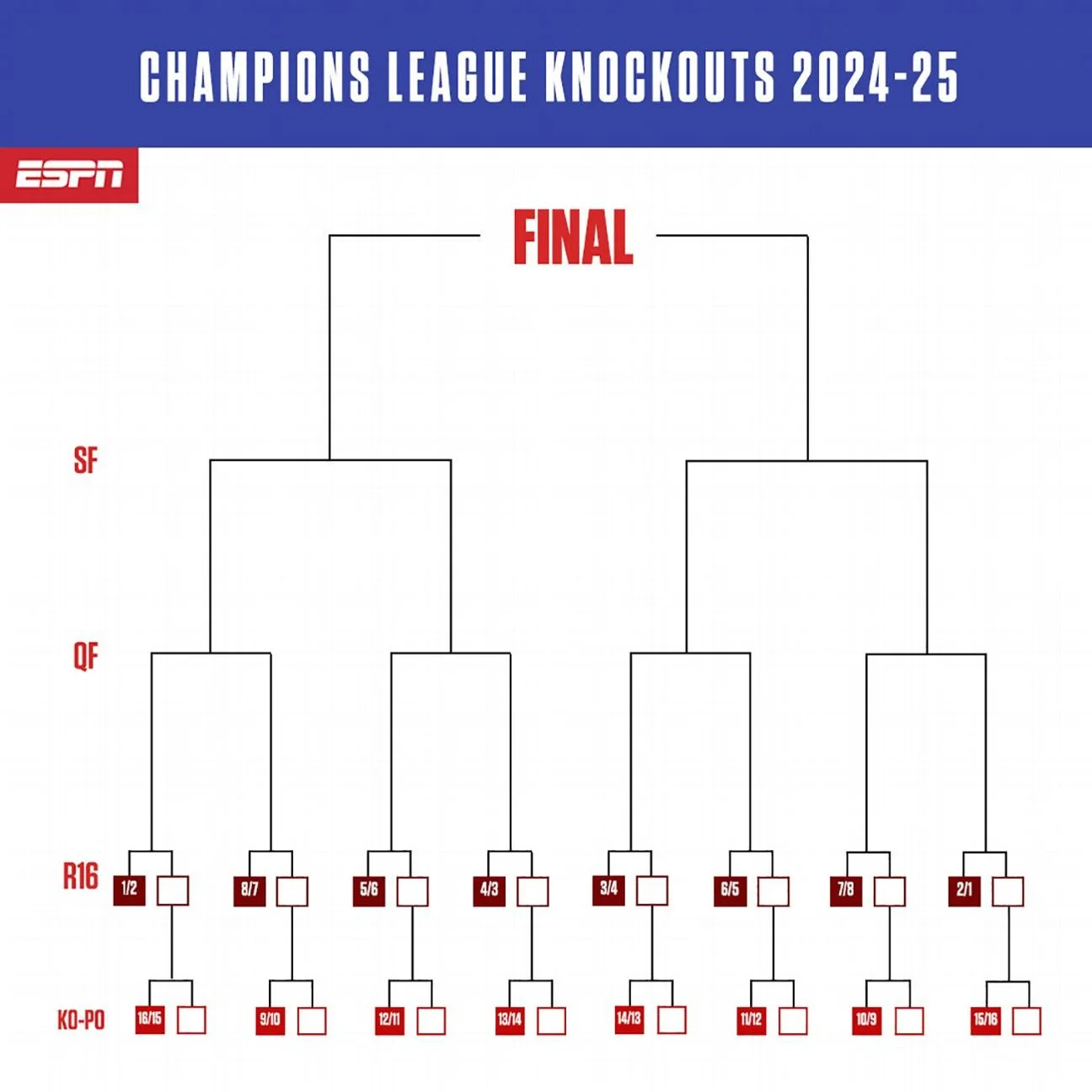 Окончательного решения по местам 9-24 пока нет. Возможна отдельная жеребьевка, при которой команды 9-16 получат соперников из группы 17-24. Клубы, проигравшие в плей-офф ЛЧ, не будут получать путевки в Лигу Европы.