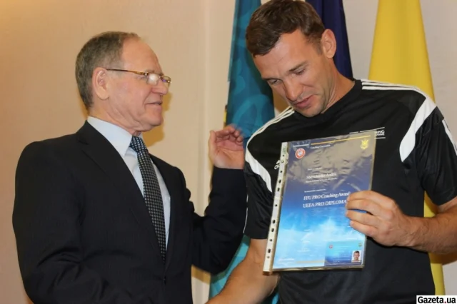 Легендарному украинскому нападающему Андрею Шевченко официально вручили "PRO"-дипломы УЕФА.