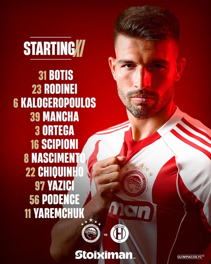 Тренер Олимпиакоса решил дать игровое время и украинскому форварду Роману Яремчуку, поэтому сегодня мы увидим его в стартовом составе.