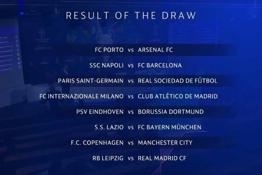 Результаты жеребьевки 1/8 финала ЛЧ 2023/24