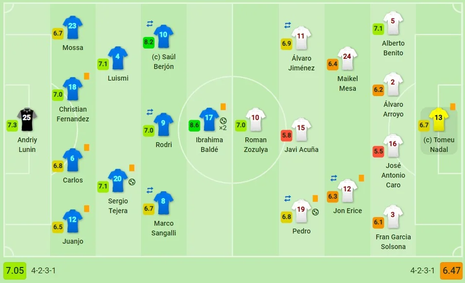 Андрей Лунин получил 7.3 – третий лучший балл в составе Овьедо. Роману Зозули поставили 7 – второй лучший балл в составе Альбасете.