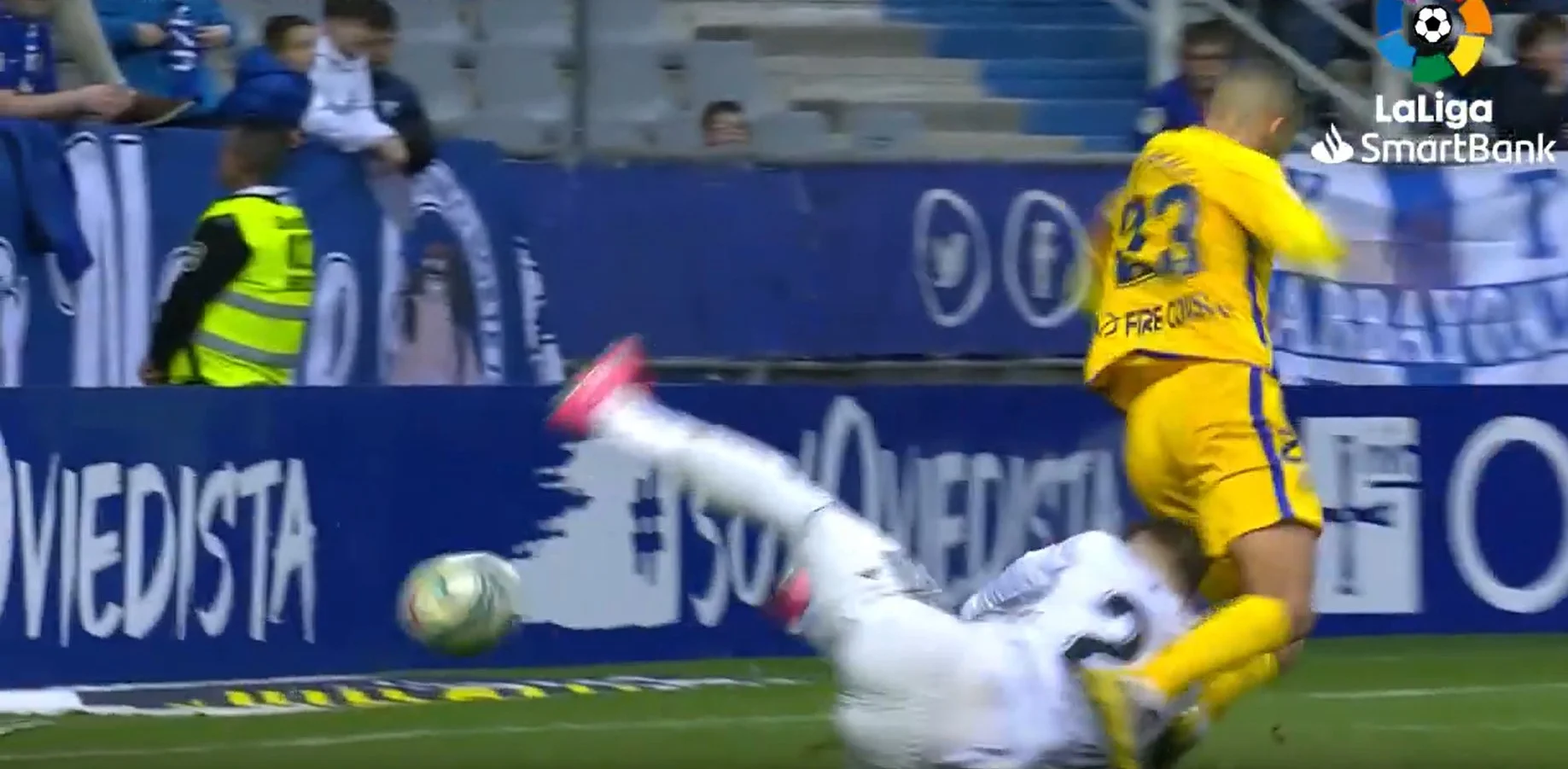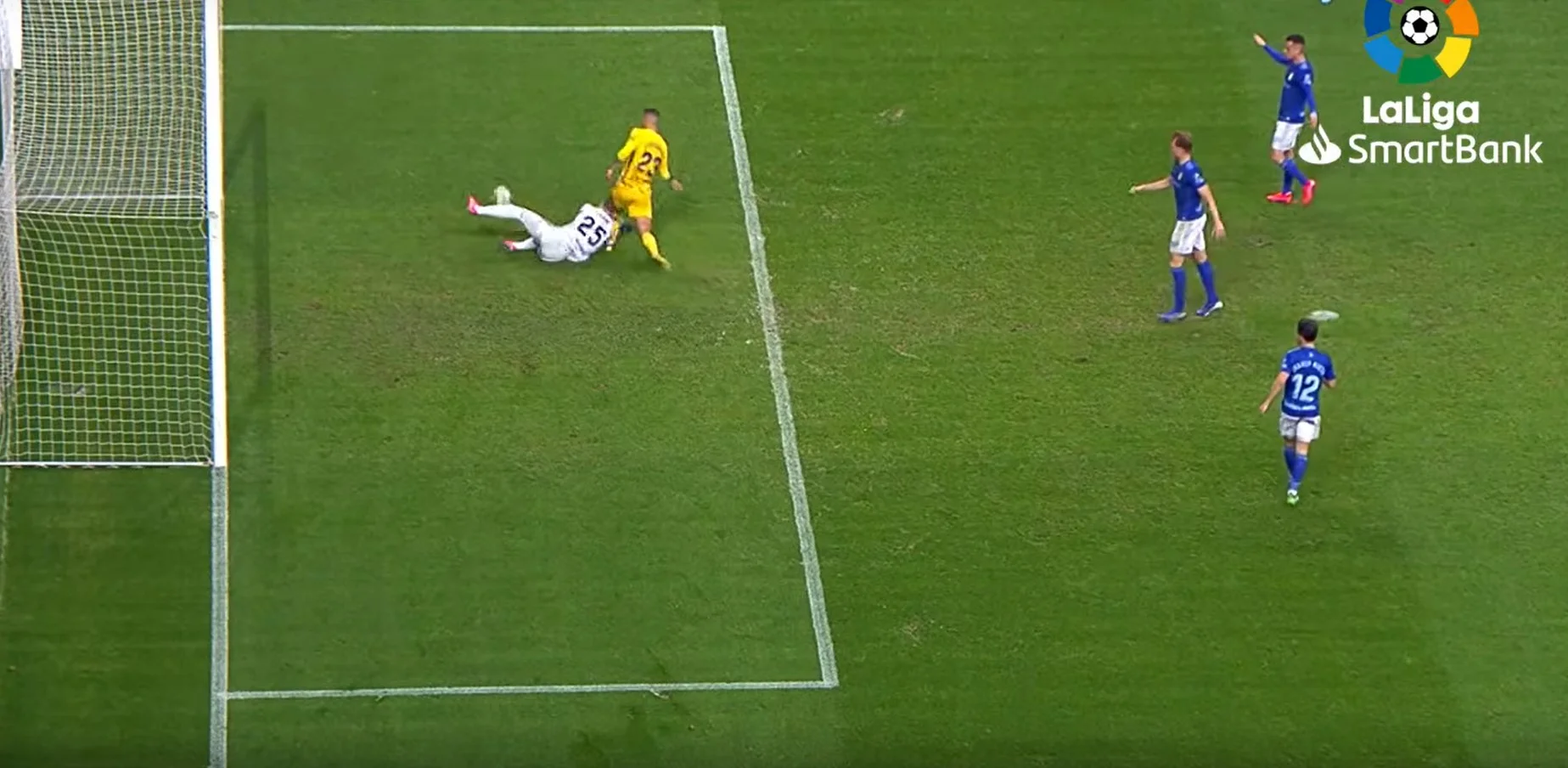 Овьедо сократил отставание на 67-й минуте с пенальти. Хозяева подавали стандарт, а в штрафной площади гости нарушили правила. Даже дважды: сыграли рукой и завалили на газон Луисми. Судья побежал смотреть повтор и зафиксировал фол из-за руки. Ортуньо, который появился на поле в перерыве, реализовал 11-метровый.
