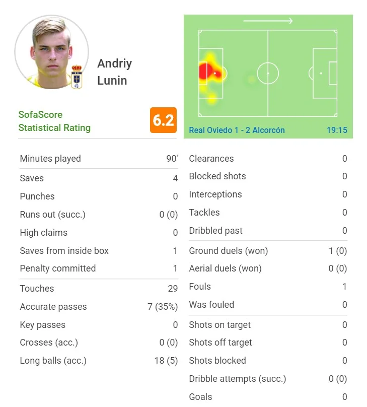 Андрей Лунин шестой раз подряд вышел в стартовом составе Овьедо. Украинец прекрасно стартовал на новом месте: стал лучшим игроком команды в январе и собрал немало комплиментов от фанов и журналистов. Сегодня против него мог выйти Сергей Мякушко, однако экс-игрок Карпат всю встречу просидел в запасе Алькоркона.