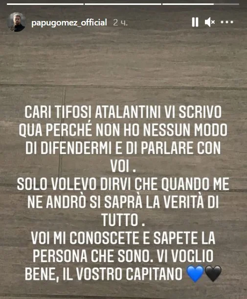 Сам аргентинец не выдержал и пригрозил рассказать всю правду, когда покинет Аталанту. Об этом он сообщил в обращении к болельщикам в своем Инстаграме: "Дорогие фанаты Аталанты, я пишу вам здесь, потому что у меня нет возможности защитить себя и поговорить с вами. Я просто хотел сказать вам, что, когда я уйду, вы узнаете всю правду. Вы знаете меня и знаете, какой я человек. Ваш капитан".
