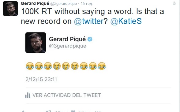 "Более 100 тысяч ретвитов записи, в которой нет ни слова. Это ли не новый рекорд на Твиттере?", - написал 28-летний защитник сборной Испании.