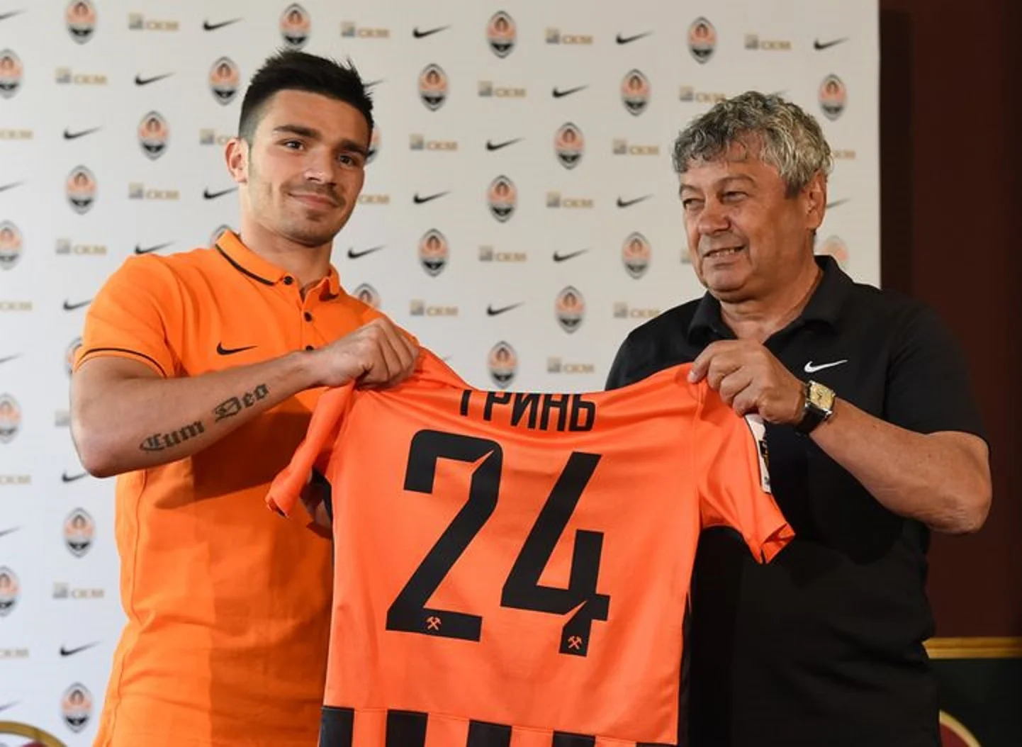 Гринь та Луческу на презентації у Шахтарі / фото ФК Шахтар