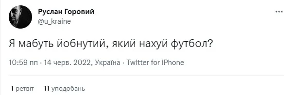 Літератор і журналіст Руслан Горовий не схвалює копаного м'яча, коли в країні йде війна. Так і написав – без купюр.