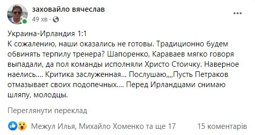 "Футбол 24" доповідає про настрої експертів і відомих уболівальників після матчу 4-го туру Ліги націй Україна – Ірландія (1:1).