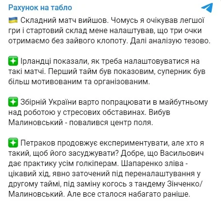 Значно поблажливіший тон у телеграм-каналу "Рахунок на табло".