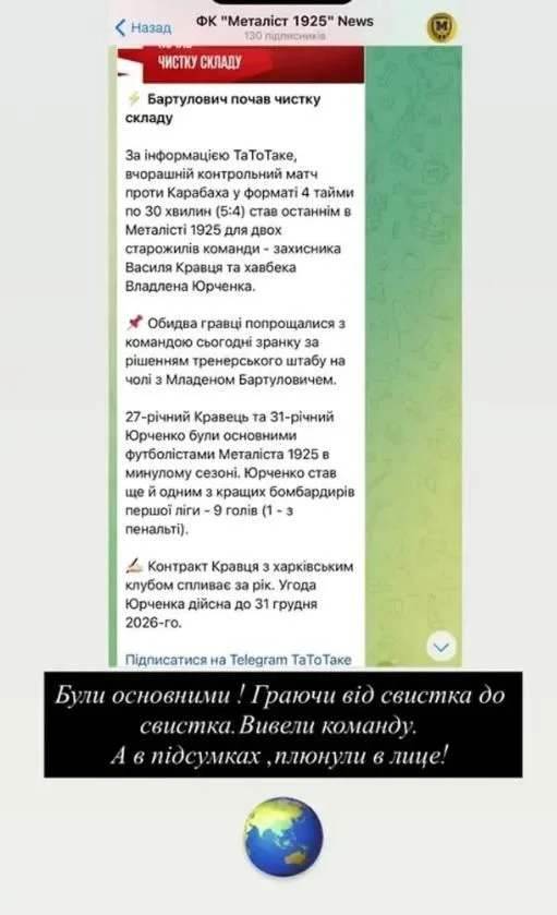 "Были основными! Играя от свистка до свистка. Вывели команду (в УПЛ). А в итоге плюнули в лицо!" – написала Ярина Кравец в соцсетях в ответ на этот инсайд.