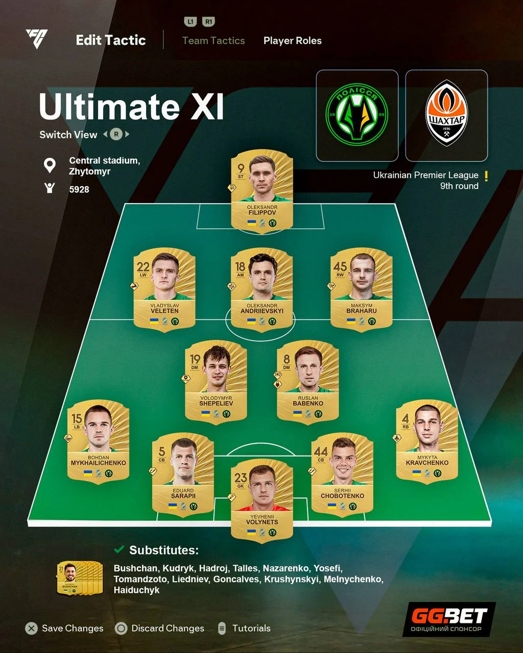 Полесье: Волынец, Кравченко, Сарапий, Бабенко, Филиппов, Михайличенко, Андриевский, Шепелев, Великан, Чоботенко, Брагару