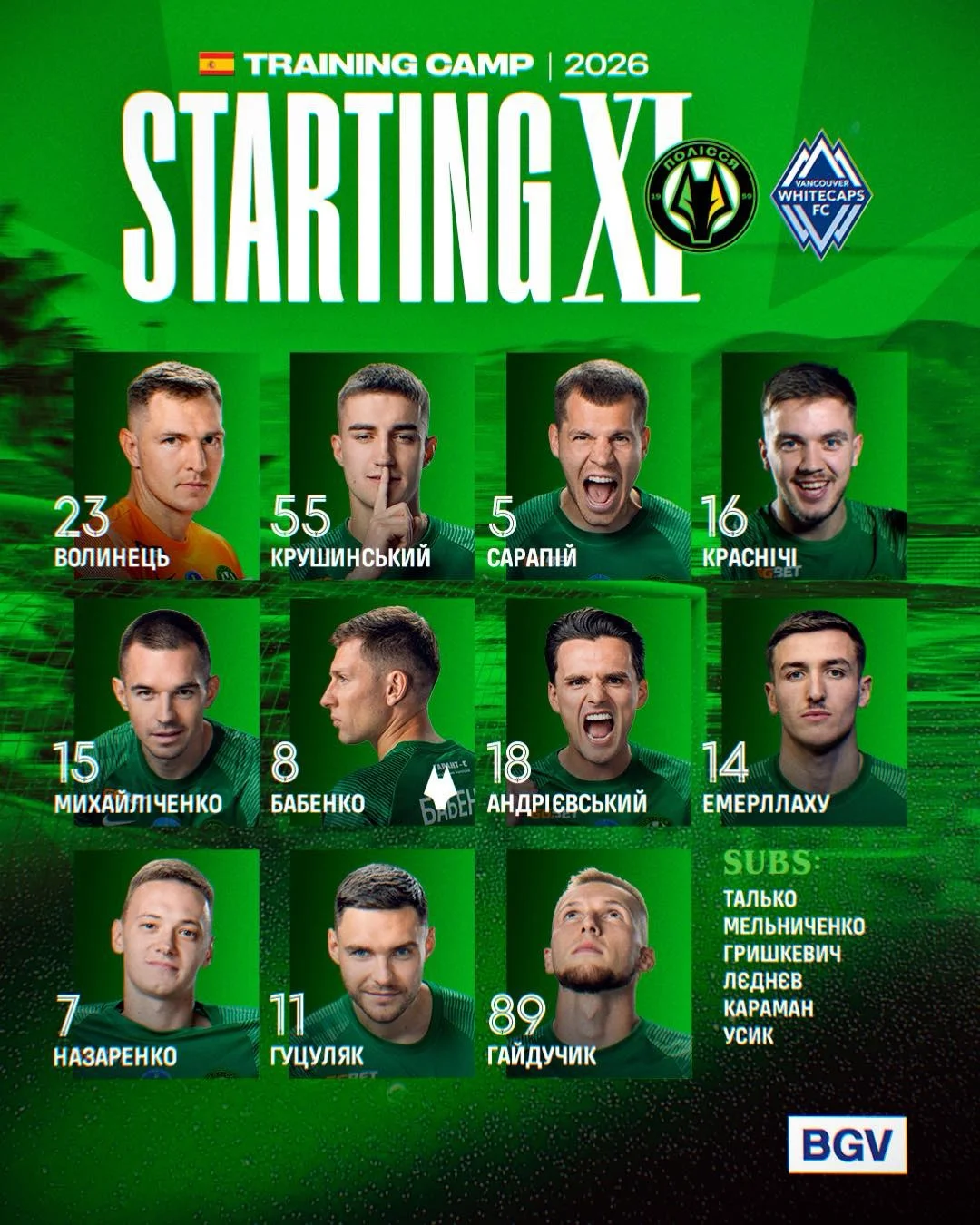 Стартовый состав Полесья: