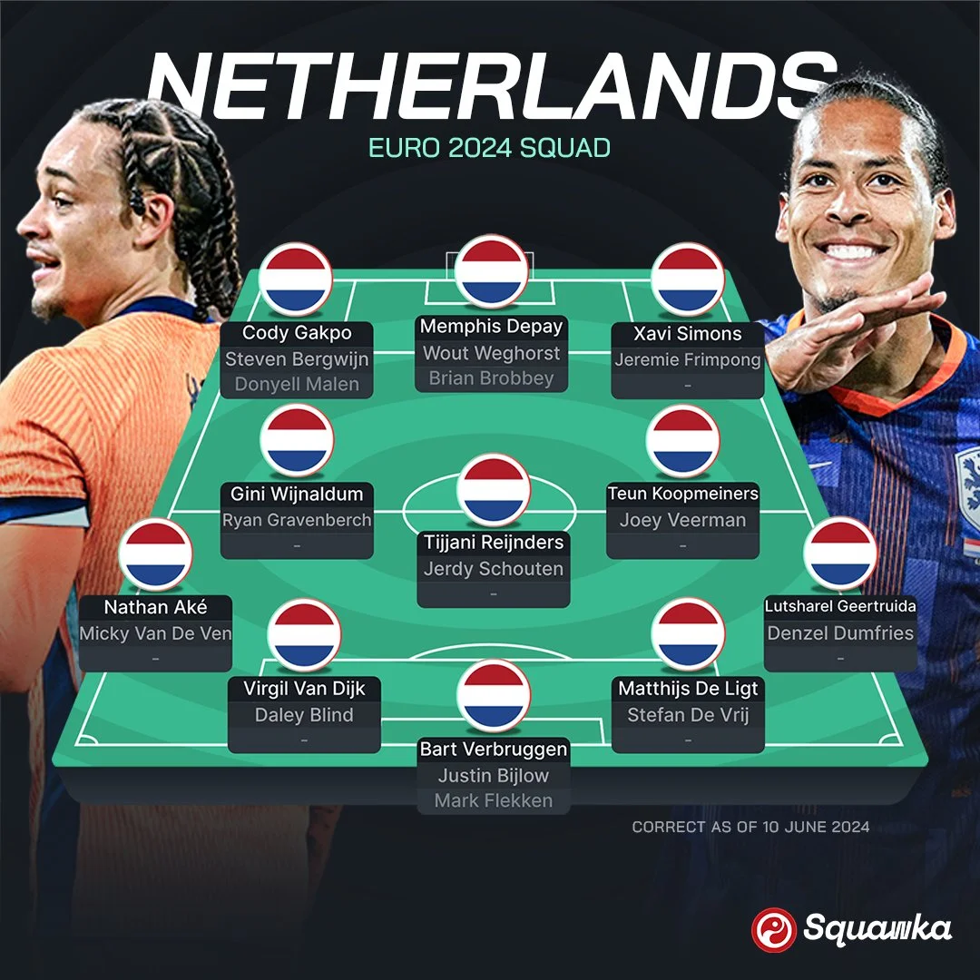 С травмами нидерландцам не везло и на протяжении отбора к Евро-2024. На это очень жаловался Рональд Куман – тренер считает, что ни в одном из матчей в группе команда не сыграла оптимальным составом. Впрочем, даже с такими серьезными пробоинами заявка выглядит грозно. Ван Дейк, Депай, Блинд, Симмонс, Гакпо, Мален – это только те фамилии, которые выдали особенно мощный сезон в клубном футболе.