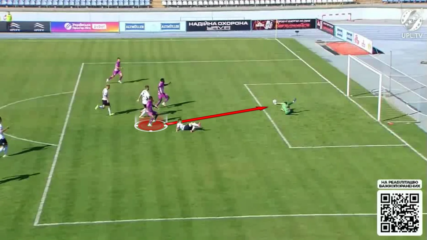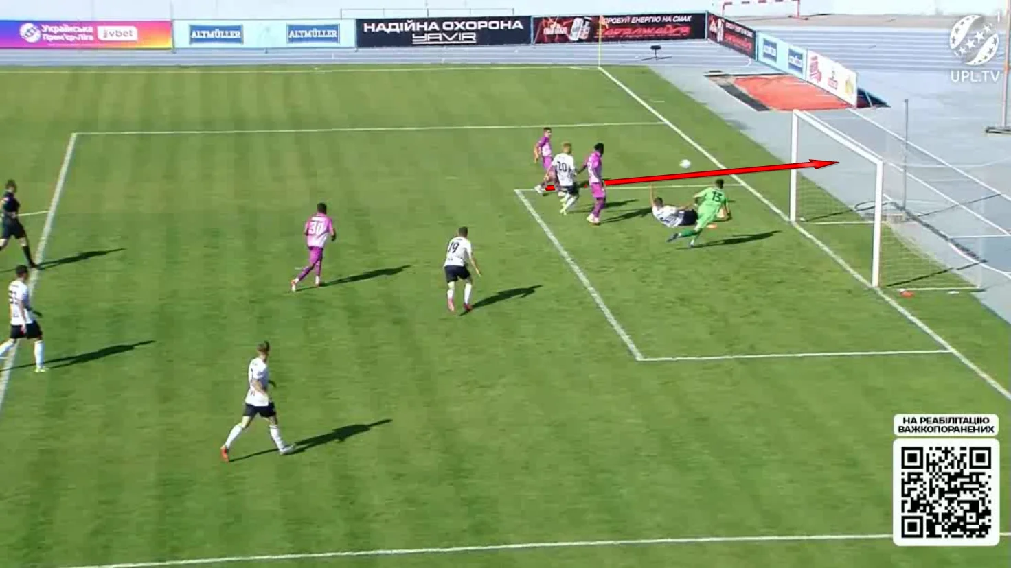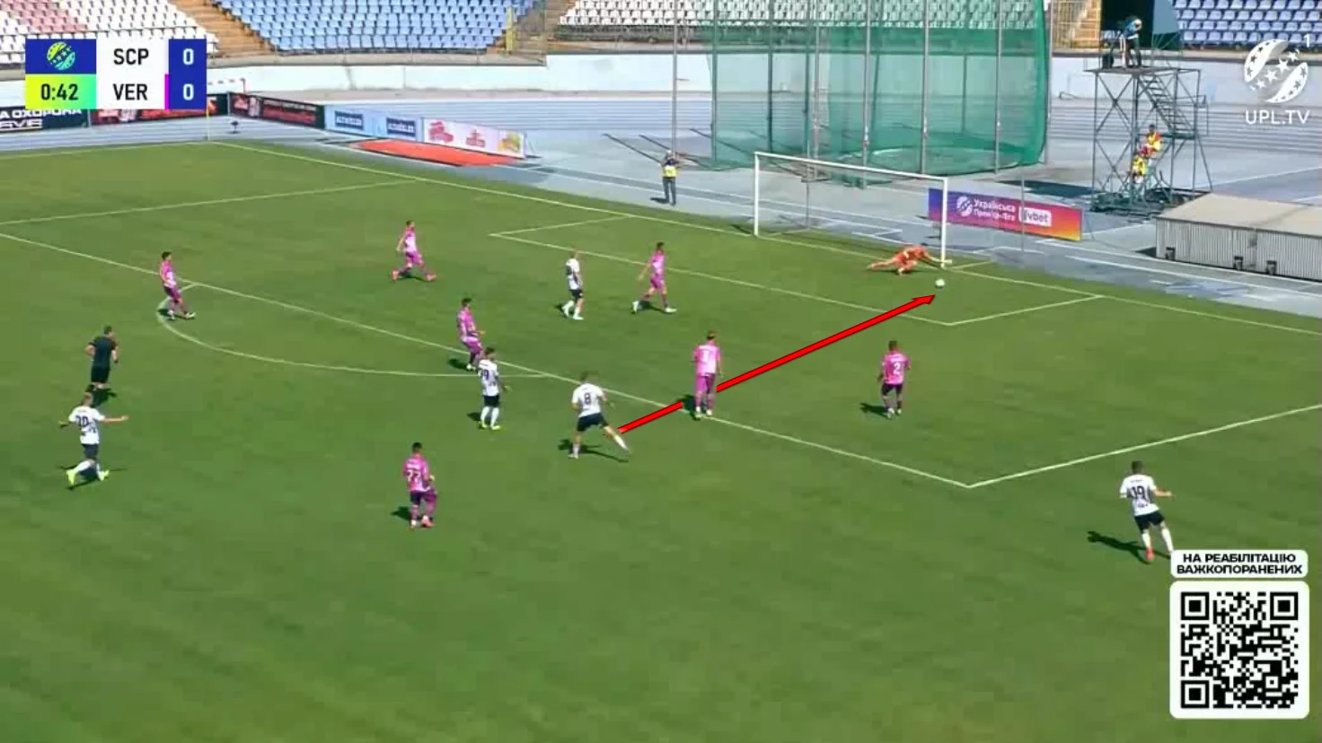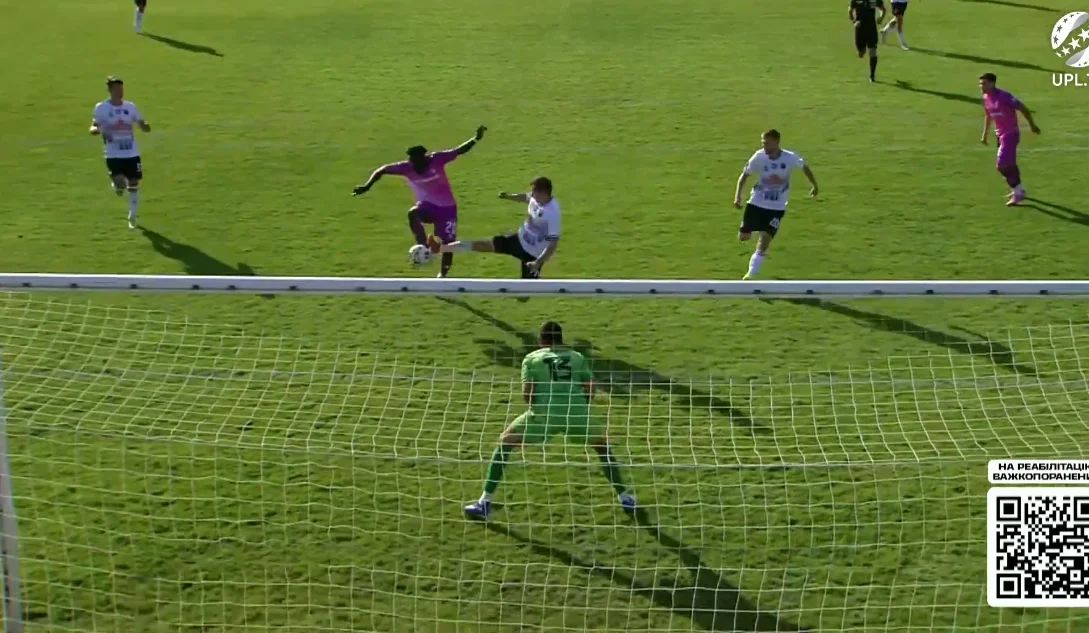 Верес вот-вот должен был дожать Полтаву, однако на 79-й минуте раздалась прервавшаяся воздушная тревога. Игру возобновили аж через 40 минут, дав хозяевам отдохнуть. Впрочем, практически сразу ровенчане могли сравнять счет – Харатин сбросил подачу из глубины под выход Уолли один на один. Тот уже готовился к удару, но Бужин в отчаянном подкате успел выбить мяч из-под ног форварда.