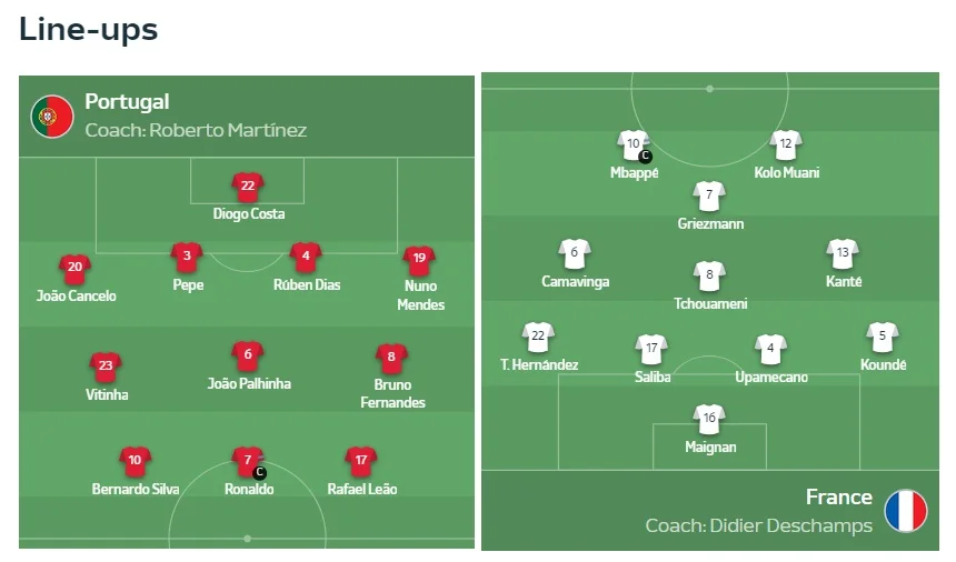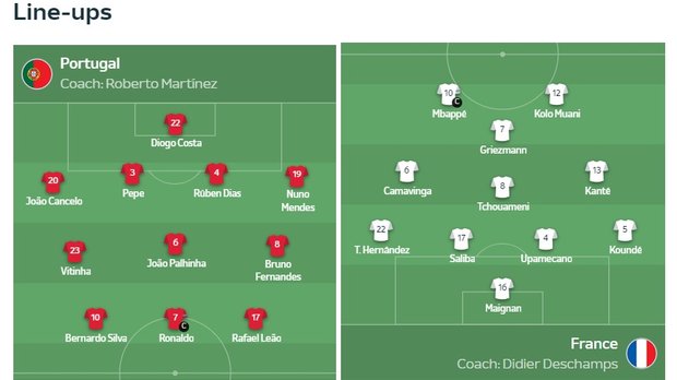 Сборные Португалии и Франции встречаются в рамках 1/4 финала Евро-2024. Стартовые составы команд и ссылка на онлайн-трансляцию – в этой новости на "Футбол 24".
