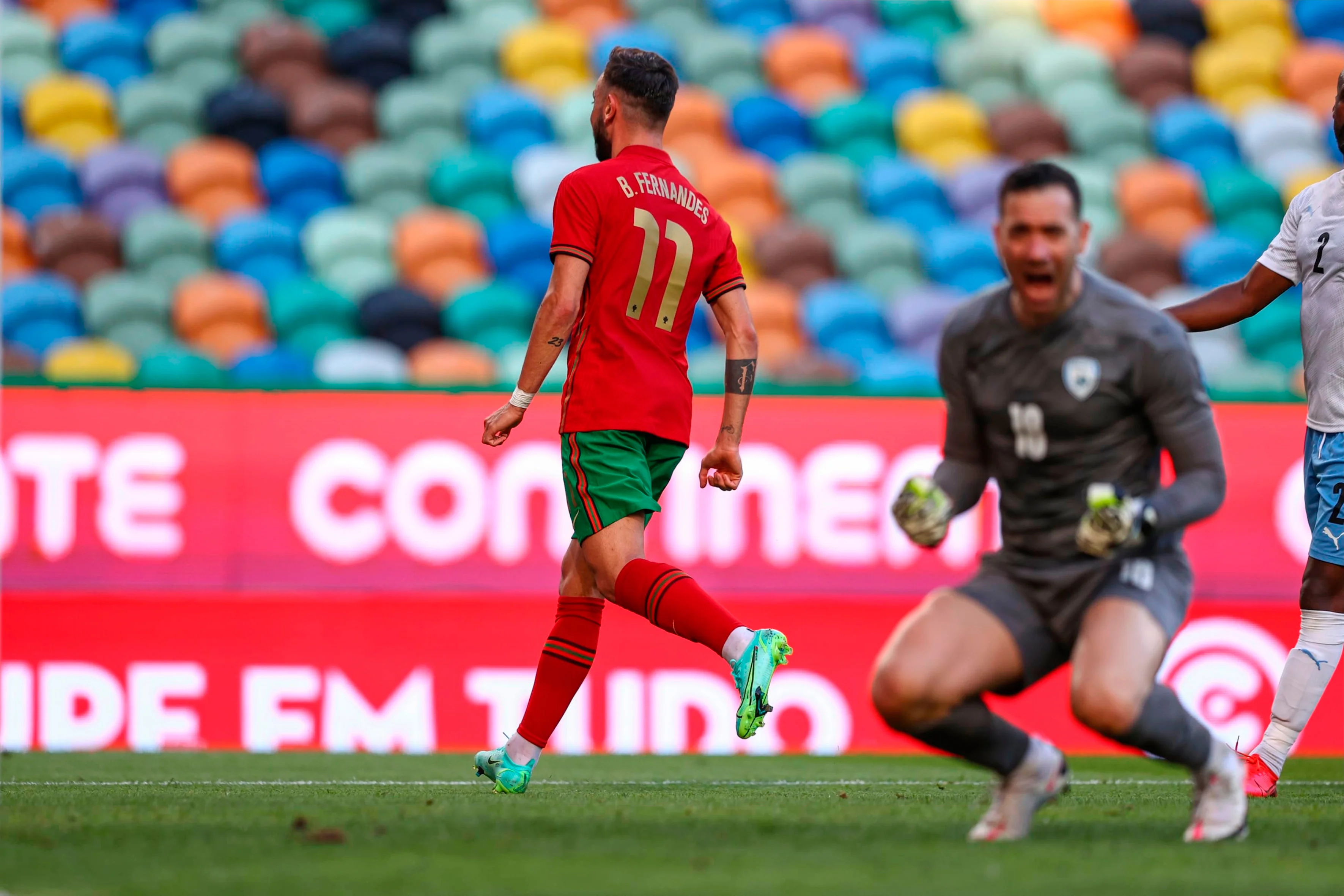 К счастью, ничего подобного не произошло. Бруну Фернандеш таким образом просто разогревался. На 37-й минуте он показал настоящий класс, исполнив эффектный заброса под выстрел Роналду, а перед перерывом своевременное включение из глубины с точным ударом позволило открыть счёт. Еще черездве минуты именно Бруну разогнал контратаку, которую завершил взятием ворот Криш. Во втором же тайме в актив 11-го номера "селесао" добавились пас Бернарду Силве под выход один на один и эффектный гол.