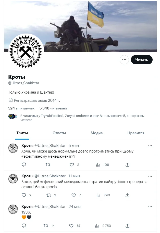 Хотя, может ли что-то нормальное долго продержаться при этом "эффективном менеджменте"?" – написали ультрас Шахтера из группировки "Кроты" на своей странице в Твиттер.