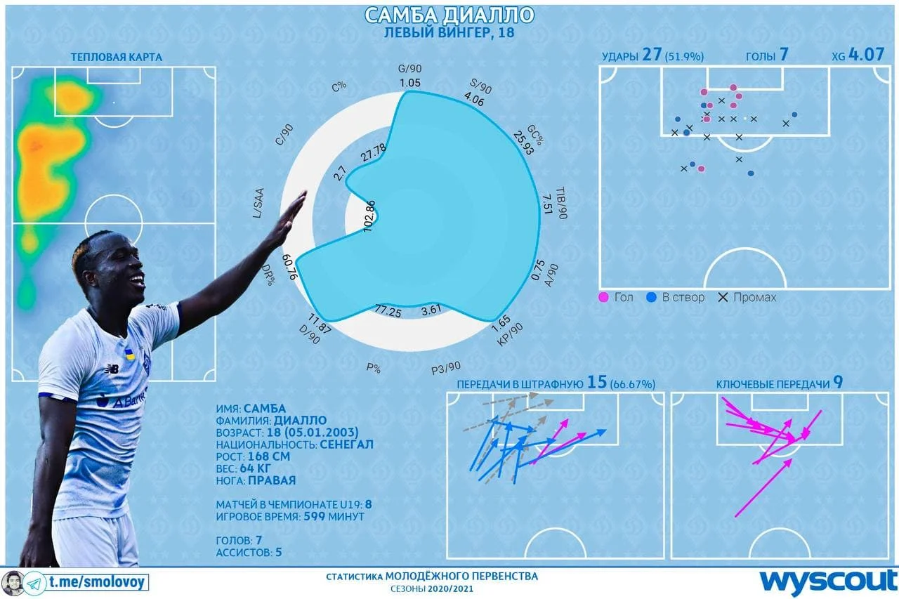 У нинішньому Динамо, після згортання іспанського вектора в академії, працювати з іноземними талантами здатен лише Луческу. Та аби потрапити під опіку досвідченого румуна Діалло повинен перерости рівень команди Костюка. Наразі він іде до цього. Сенегалець витратив лише третину сезону, щоб про нього почали говорити не лише вузькопрофільні спеціалісти. У чемпіонаті України серед 19-річних вінгер провів 10 матчів, у яких забив 7 м'ячів (хет-трик проти Десни, дубль у ворота Олександрії). Ще крутіші цифри в Юнацькій лізі УЄФА, де юні "динамівці" протистояли Барселоні (двічі), Баварії та Бенфіці – 4 поєдинки, 5 голів. Чи вразить ця статистика головного тренера? Як мінімум, Луческу знає про успіхи африканця і вже озвучив умови появи в першій команді на постійній основі (нині Діалло періодично тренується зі старшими партнерами) – подальший прогрес і вдала гра гарантують йому місце в обоймі.