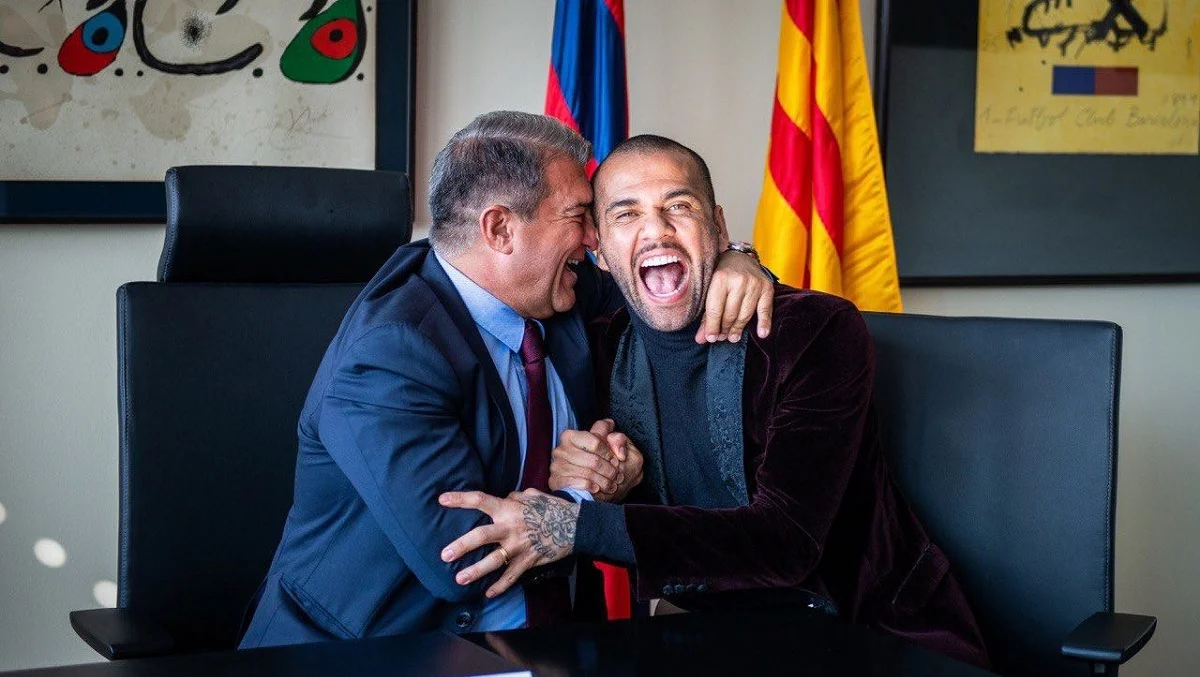 Жоан Лапорта и Дани Алвес / Twitter президента Барсы