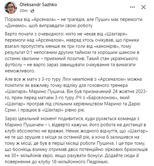 А ось Олександр Сажко із Трибуни не полінувався, як то кажуть, "на пальцях" пояснити, що не так із Пушічем у Шахтарі.
