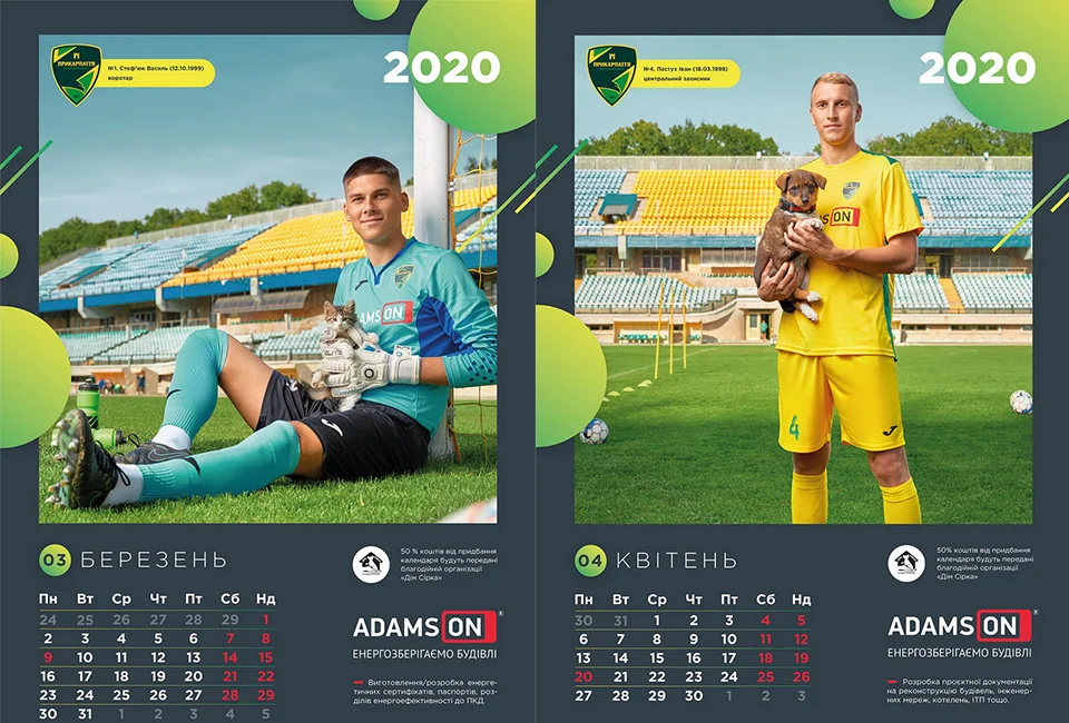 Игроки команды Первой лиги ради помощи благотворительной организации "Дом Серко" приняли участие в фотосессии. Компаньонами прикарпатцев стали бездомные кошки и собаки. Деньги от продажи буклетов пойдут на различные нужды животных, не имеющих дома. Стоимость календаря – 100-150 грн.