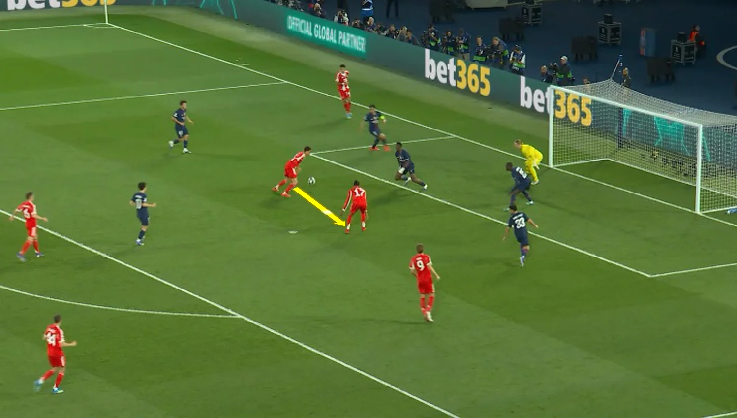 Казалось, что Париж вот-вот забьет третий гол, однако вместо этого счет сравняла Бавария. О себе снова заявил Олисе, который принял пас от Павловича и с линии штрафной площади вколотил под перекладину. Мяч прошел мимо Сафонова (возможно, из-за рикошета) – 2:2!