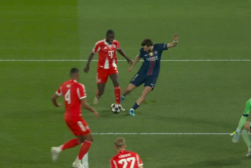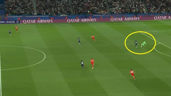 Дальнейший вынос запустил контрвыпад парижан с рывком Дуэ к штрафной площади Баварии. Там Дезире переиграл двух защитников и бахнул мимо ближнего угла!