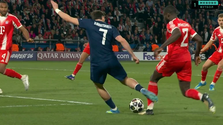 А затем игра резко изменилась. Затяжные атаки Баварии все чаще стали нарываться на контрвыпады, что до боли напоминало рейды Винисиуса и Мбаппе. Больше всего выделялись Дуэ, Дембеле и Кварацхелия, которые еще до пропущенного гола организовали классную атаку с врыванием Хвичи на левый край штрафной.