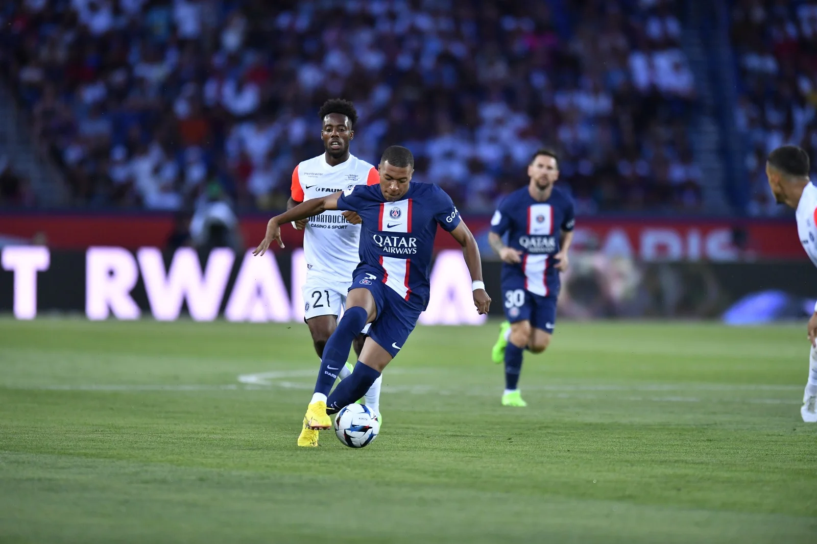 ПСЖ принимал Монпелье – Кристоф Гальтье дебютировал на Парк де Пренс в статусе наставника столичной команды. Неймар, Месси и Мбаппе сформировали атакующее трио – напомним, что только француз попал в топ-30 номинантов на "Золотой мяч-2022". Лучший шанс открыть счет упустил именно Килиан, который не забил пенальти, назначенный за игру рукой. Швейцарец Йонас Омлин выиграл дуэль у нападающего, переведя мяч на угловой.