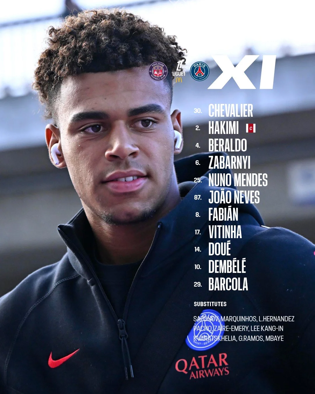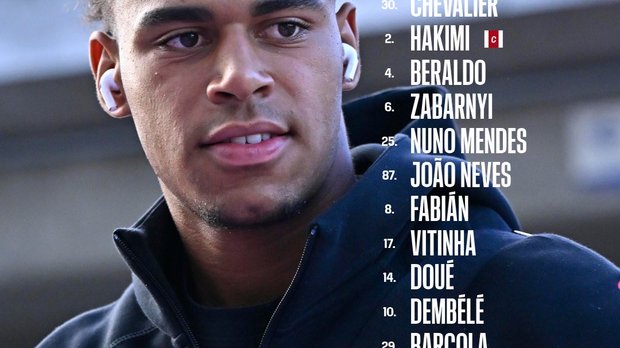 ПСЖ: Шевалье, Хакими, Забарный, Беральдо, Мендеш, Невеш, Витинья, Руис, Дуэ, Дембеле, Барколя