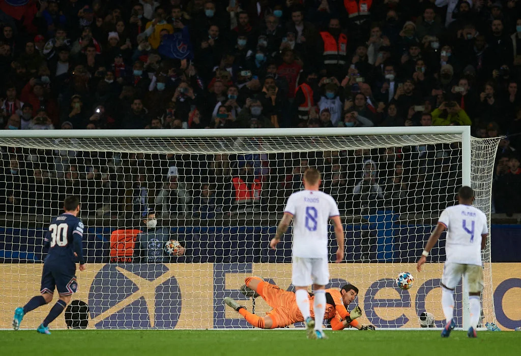 Реал огрызнулся дальним ударом Крооса над перекладиной, а на 62-й минуте его фанаты схватились за голову – Мбаппе влетел в штрафную и получил по ногам от Карвахаля. Пенальти! Его исполнение доверили Месси. Лионель подошел к мячу и... не забил! Его выстрел в правый угол парировал Куртуа. Ужасная 4-летняя серия аргентинца без голов в ворота "бланкос" продолжилась.