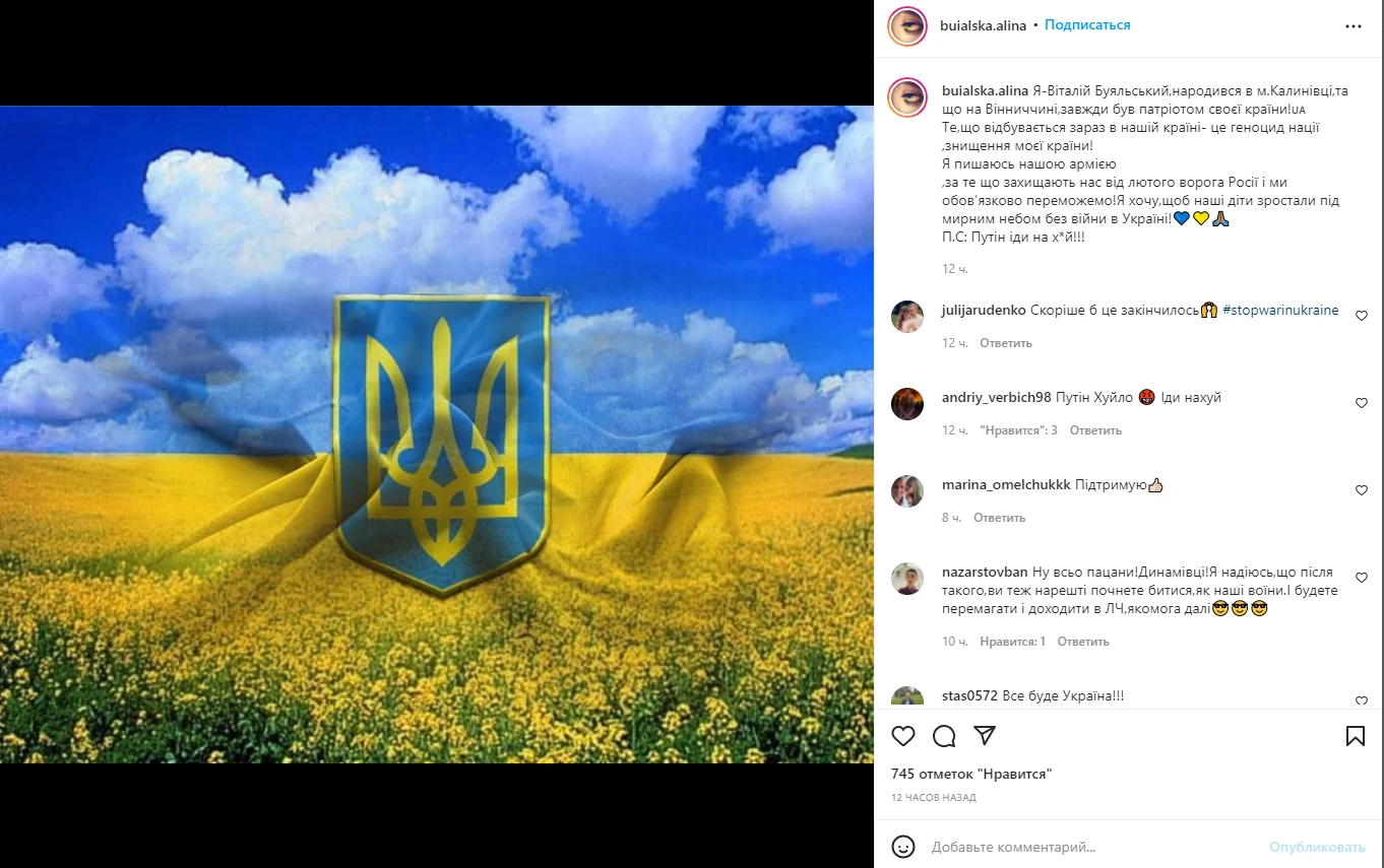 P.S.: Путин иди на х*й!" – написал Буяльский в социальной сети Instagram.