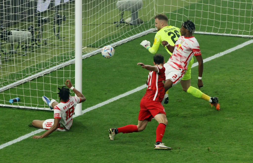Всего через пять минут Фрайбург помог Лейпцигу создать голевой момент – это Хёфлер головой опрометчиво сбросил мяч на линию вратарской. Нкунку подхватил его и выстрелил с шести метров, попав во Флеккена, но сфера всё равно полетела в направлении ворот. Нико Шлоттербек в последний момент выбил её из ленточки.