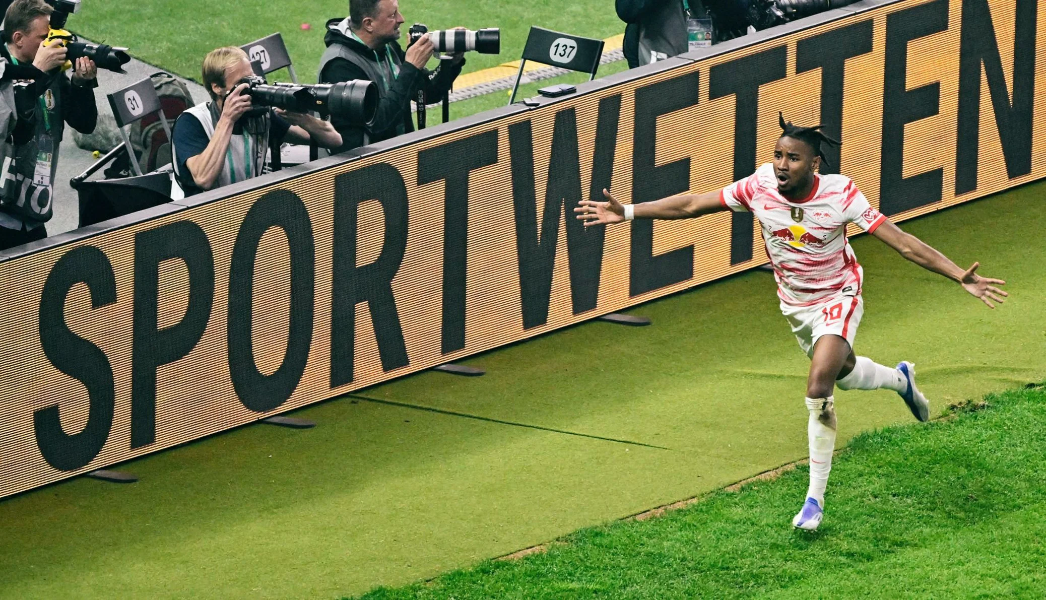 Финальный свисток подарил болельщикам серию пенальти. РБ Лейпциг шикарно реализовал все свои удары, а вот Фрайбург подвели капитан Гюнтер (выше ворот) и Демирович (попал в перекладину). Таким образом, "ротен Буллен" победили в меньшинстве, выиграв свой первый серьёзный трофей в истории!