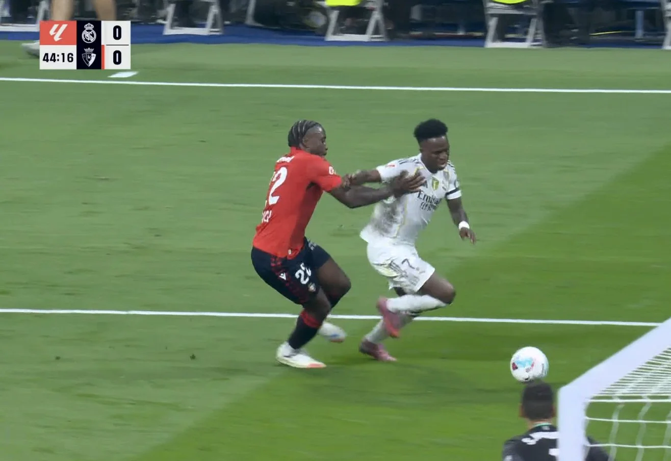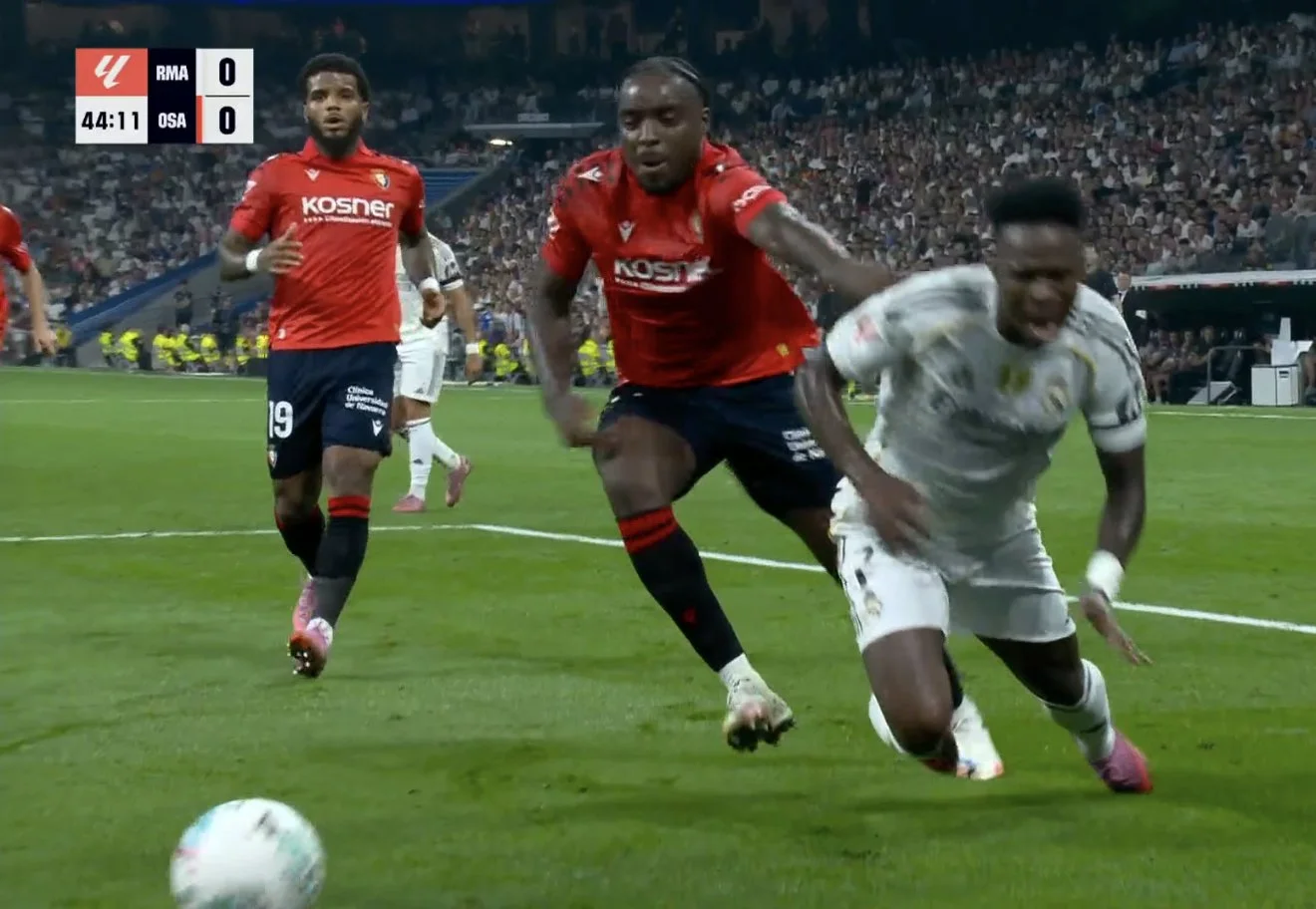 Кроме того, в первом тайме на пенальти претендовал Винисиус, который упал в штрафной площадке после контакта с Бойомо. Арбитр проигнорировал этот эпизод. Такие 11-метровые сейчас не ставят.