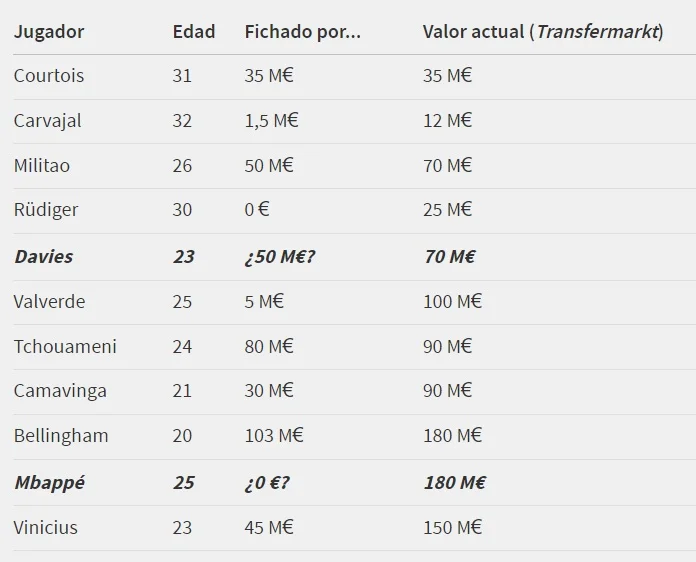 Основа мадридцев на следующий сезон может стоить более миллиарда евро по версии Transfermarkt, посчитал AS.