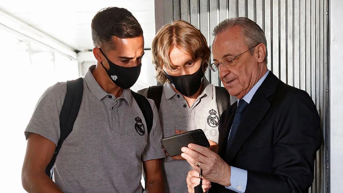 Лукас Васкес, Лука Модрич и Флорентино Перес / Фото Реал