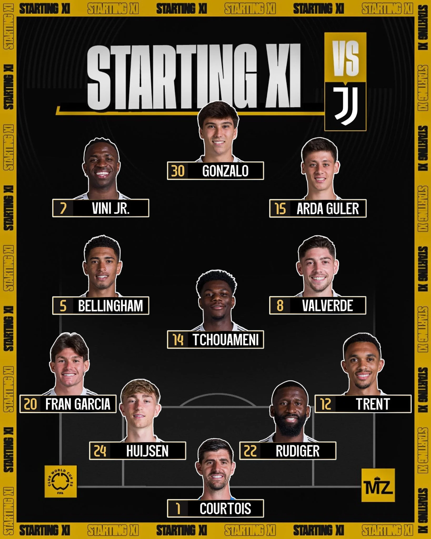 Реал: Куртуа – Рюдигер, Хёйсен, Трент, Фран Гарсия – Чуамени, Беллингем, Вальверде – Гюлер, Винисиус, Гонсало.