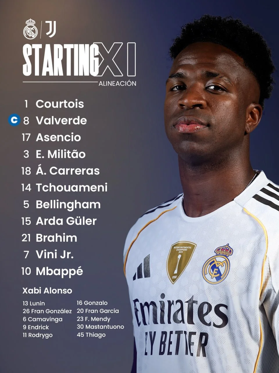 Стартовый состав Реала: Куртуа – Вальверде (к), Асенсио, Милитао, Каррерас – Чуамени, Беллингем – Гюлер, Браим, Винисиус – Мбаппе.