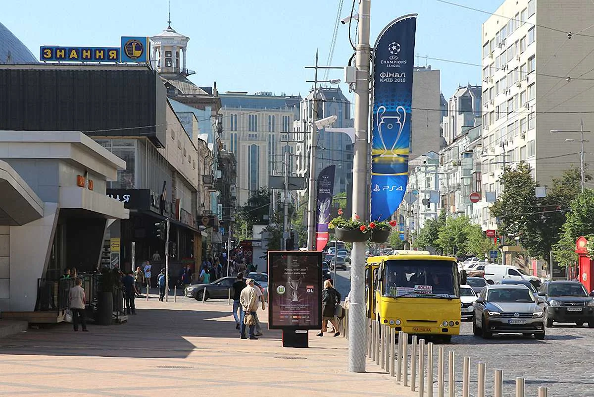 В центре Киева можно заметить немало рекламы, посвященной финалу Лиги чемпионов. На Крещатике, в частности, расположена официальная фан-зона, которая лучше всего напоминает о том, что праздник уже очень близко.