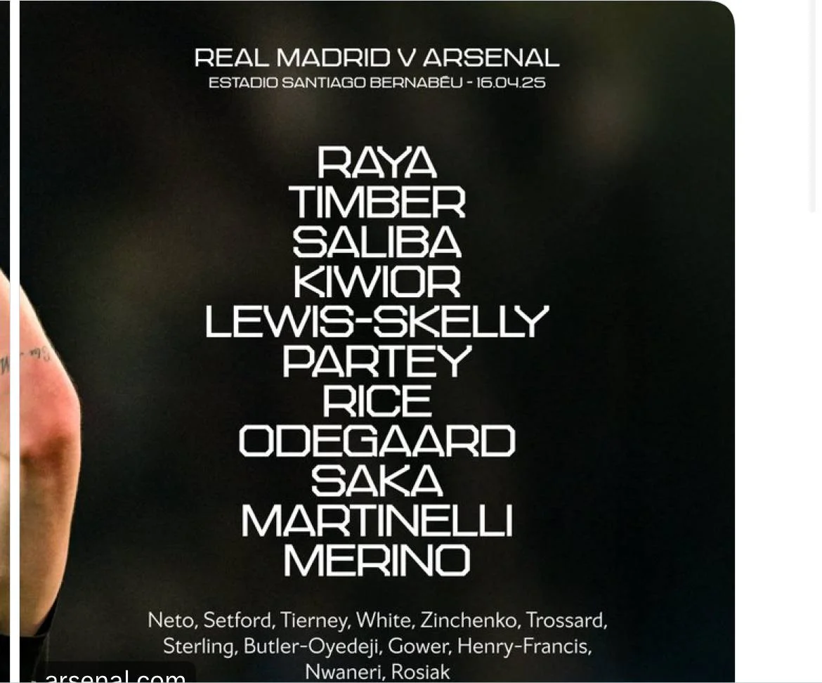 Арсенал: Райя, Тимбер, Салиба, Кивиор, Льюис-Скелли, Партей, Райс, Эдегор, Сака, Мерино, Мартинелли.