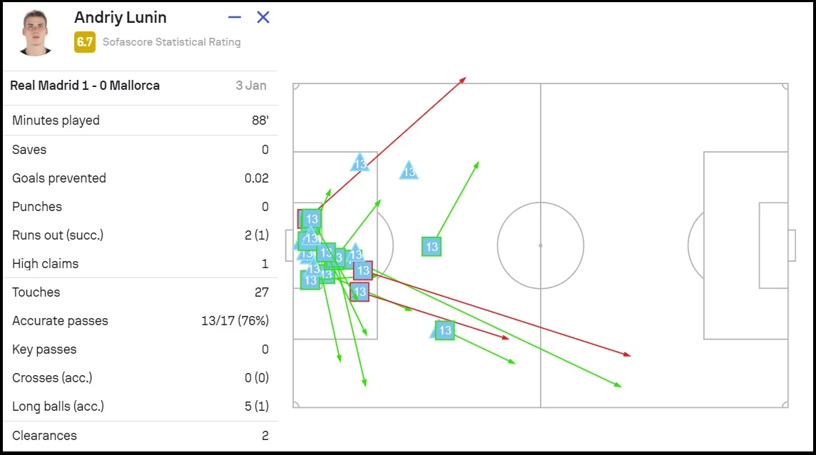 Карло Анчелотти показал больше расположения к Лунину и выпустил в старте на первый матч года. Более того, авторитетные СМИ уверяли, что хорошая игра с Мальоркой гарантирует Андрею место в воротах на дерби с Атлетико в Суперкубке Испании и сделает фаворитом в следующих турах Примеры.