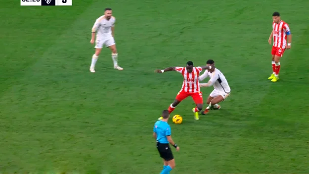 На 81-й забивать должен был Винисиус, который принял заброску от Крооса и вышел на рандеву с Машимиану. Голкипер спас Альмерию. Еще через две минуты Джуд пробивал с правого края штрафной в падении через себя – Машимиану уже не мог помочь, но сфера пролетела рядом со штангой.
