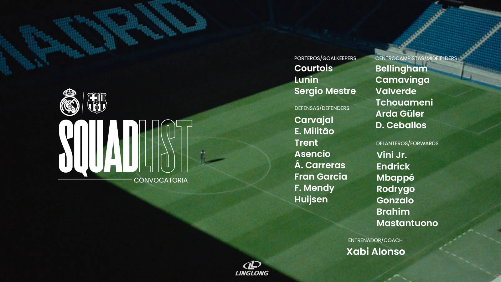 Главный тренер Реала Хаби Алонсо определился со списком игроков на матч 8-го тура чемпионата Испании против Барселоны.