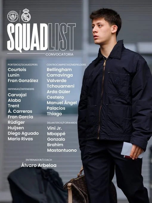 Тренер Реала Альваро Арбелоа определился с игроками, которые отправятся на ответный матч против Манчестер Сити в 1/8 финала Лиги чемпионов 2025/26.