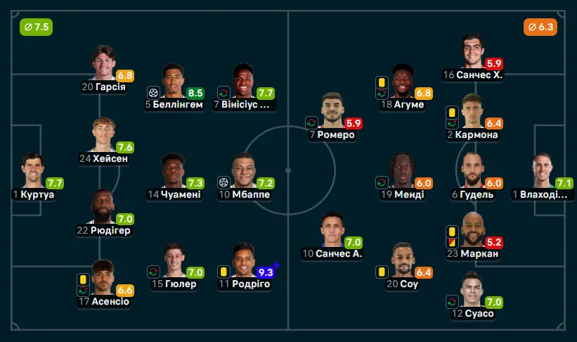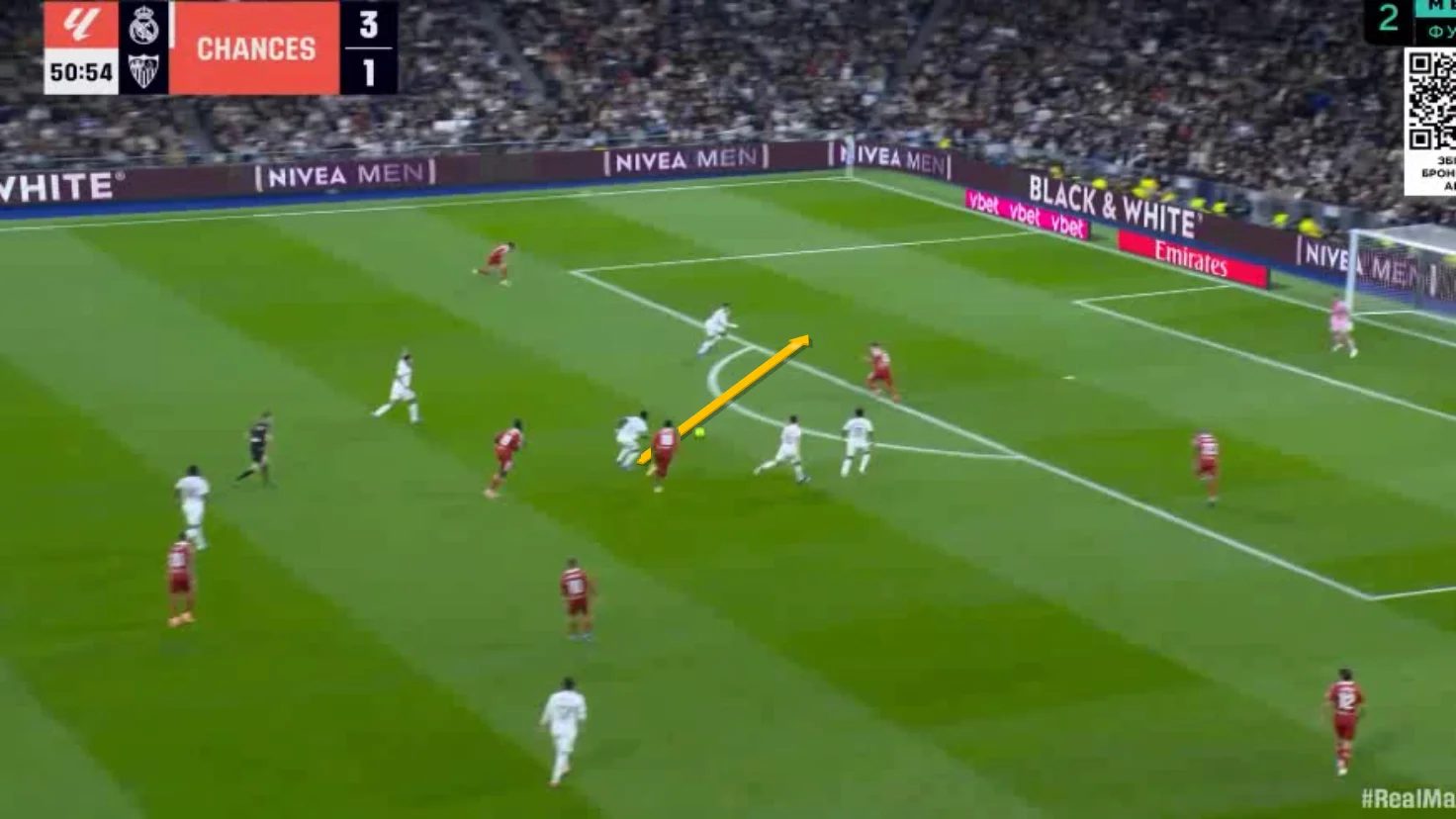 Впрочем, на 68-й минуте произошло важное событие. Севилья осталась в меньшинстве – это Маркан срезал Беллингема в подкате в центре поля, получив вторую желтую. После этого "рохибланкос" было трудно атаковать. Реал и до этого набирал обороты, но теперь подопечные Хаби Алонсо прижали соперника.