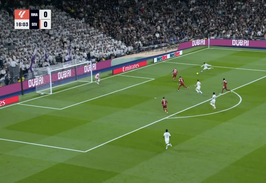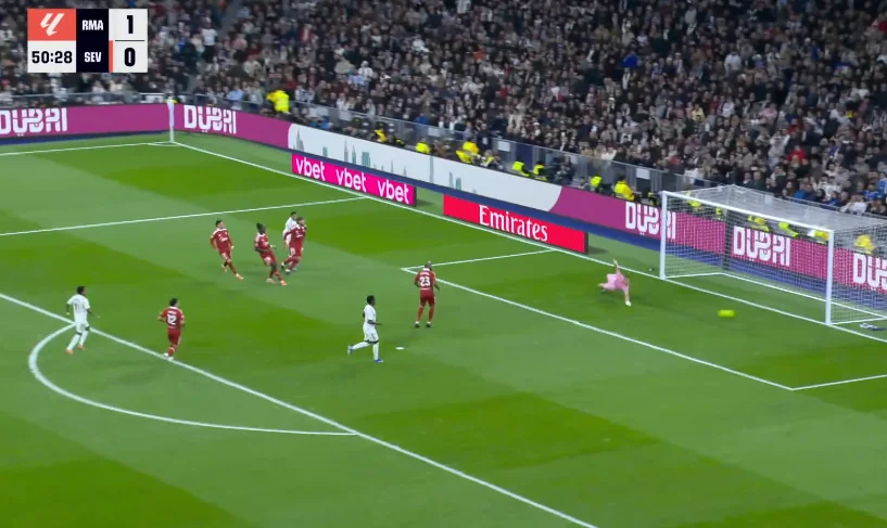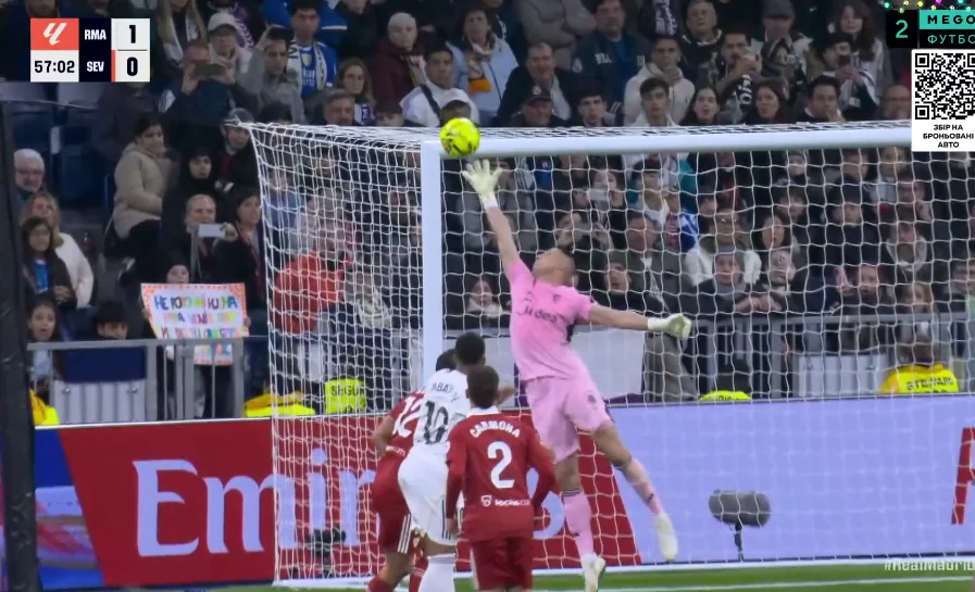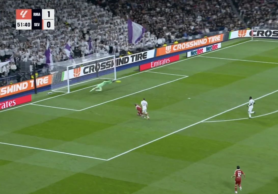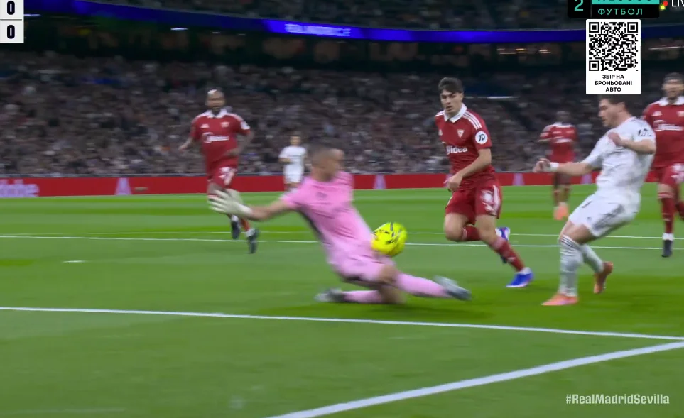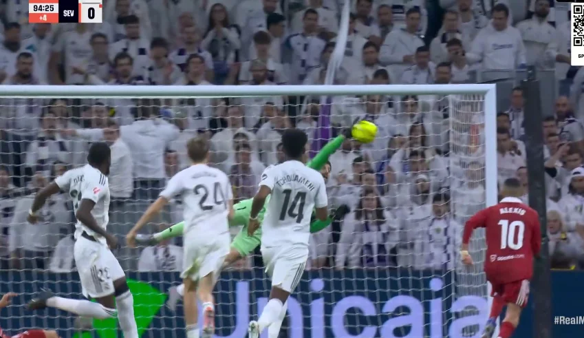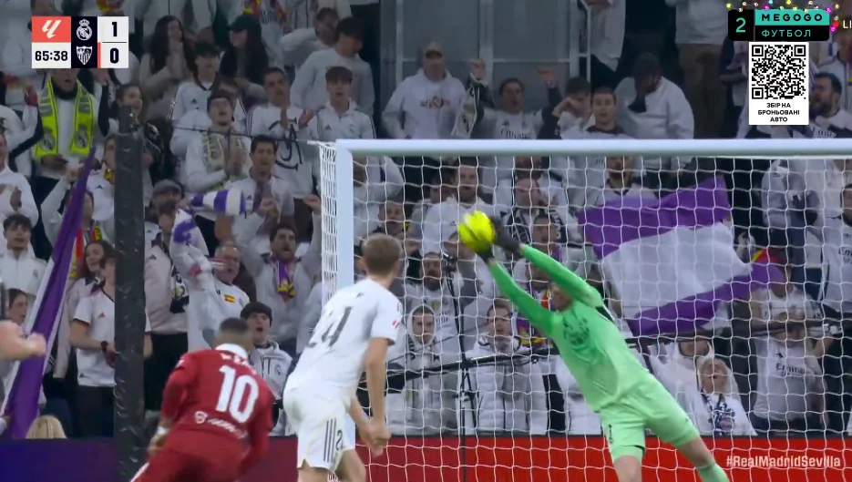 На 89-й минуте Беллингем тоже заработал пенальти, но его отменили после вмешательства VAR. Севилья же на последних секундах могла размочить счет на 5-й компенсированной минуте, когда Альфон закрутил из-за пределов штрафной. Мяч летел в дальнюю девятку, однако Куртуа выполнил фантастический сейв!