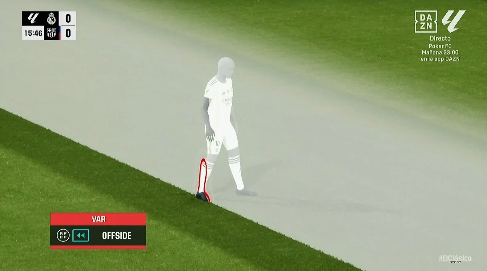 По мнению известного паблика Archivo VAR, судья ошибся – Ламин сам заплел ногу бразильцу и не дотянулся до мяча. Впрочем, чуть позже этот же паблик нарисовал линии в самом начале атаки и нашел офсайд у Вини.